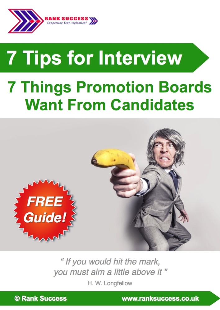 Here you will read insights into what else the interview panel/assessors want to see in your pitch for promotion. This isn’t covered in the scoring system or framework to which you will be marked, but ignore at your peril! I also provide signposting and direction for further help.