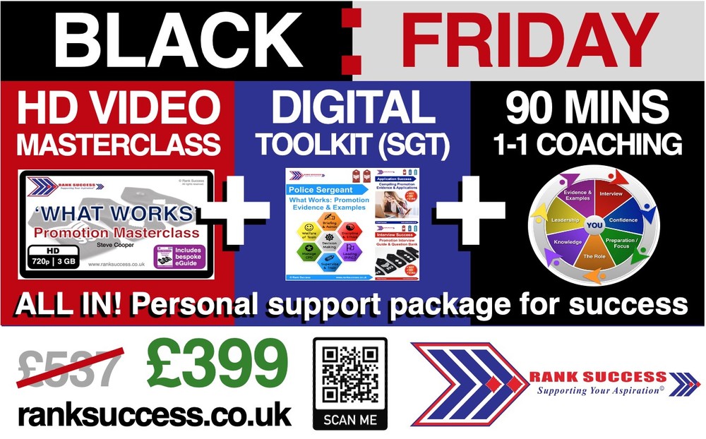 This includes: HD Video Masterclass & supplementary materials; Sergeant promotion evidence guide; Interview and Application Success guides; 90 minute coaching session voucher.